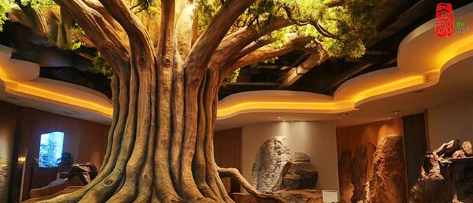 仿真樹包柱子在大跨度的房間內經常使用,用水泥現場雕塑的仿真樹包柱子能模仿各種樹的特征,北京圣園工程用各種仿真樹把您的柱子進行裝飾,讓您的柱子成為藝術品的一部分。這個藝術品是用水泥在現場雕塑制作的,水泥雕塑具有其他雕塑無法比擬的優點,先造價低,其次是防火、無毒無味。