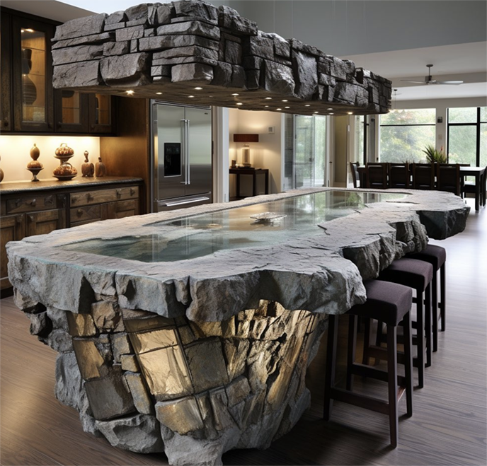 項目描述:? 水泥仿木餐桌是一種將自然元素引入室內,通過仿石材質和假山景觀設計,創(chuàng)造出如同置身山水之間的用餐氛圍。這類水泥仿木餐桌餐廳以仿石和假山為核心設計元素,融合了自然與人造景觀,為客人提供沉浸式的自然體驗。大量使用仿石材質打造的水泥仿木餐桌,呈現(xiàn)出自然石材的粗糙紋理和厚重感,賦予空間一種大自然的質樸氣息。