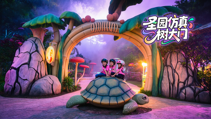 湖北恩施漫無寶f 景區仿真樹大門施工過程,大門采用巨型橫木結構,跨度達到16米,f 格采用高仿真古樹。在仿真樹大門設計之初,北京廠家設計了多款傳統方案,但都沒被甲方選中,在開會討論方案時,有的設計說到:距離真樹這樣近,帶樹葉的仿真樹制作得再像也比不過真樹,這句話給了大家設計靈感,于是設計了沒樹葉的仿真古樹來制作仿真樹大門。