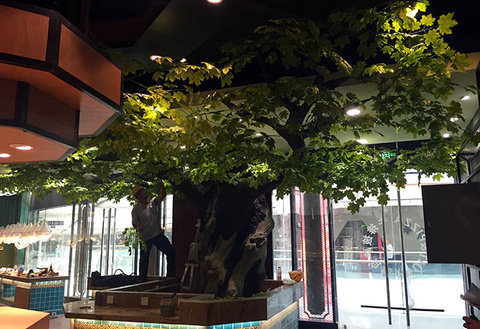 頂面室內山洞裝修的材料其實很簡單,就是鐵絲網+速凝水泥,但是施工工藝并不簡單。僅速凝水泥就得是抹得很薄很薄的兩層,確保并不會往下掉(當然做的時候會一直往下掉,很像下水泥雨,等第二遍完全干透了就成型了。