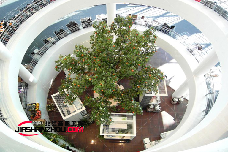 大廳頂部可以擺放花草樹木和塑石假山,不僅可以引導(dǎo)人們體驗建筑中的山水f光,還可以讓他們在不離開花園的情況下看到自然美景,坐在貧窮的泉水和山谷的美麗景色中。粉紅色的塑石假山、漏水的窗戶、開門半透明的石頭,有著不同的步態(tài)和f景;花壇和走廊之間的過渡處旁邊的綠色石路。