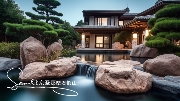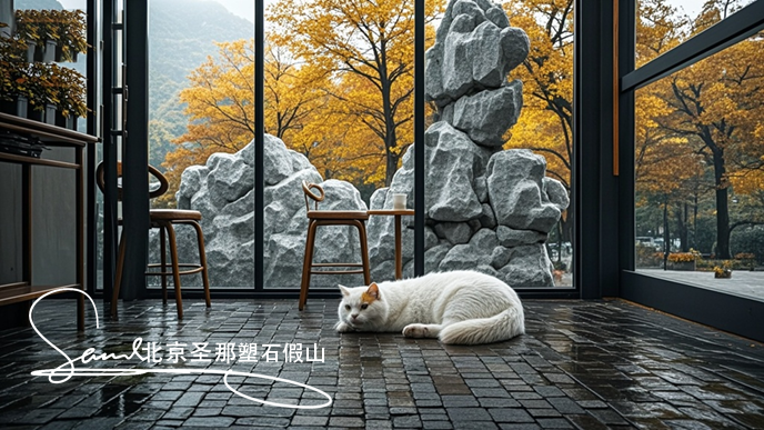 2. 塑石假山分層著色:先涂底色(灰藍色/赭色),待其干燥后,用海綿點上深色斑點(模擬巖石礦物質(zhì)沉積),后噴上漸變過渡色。